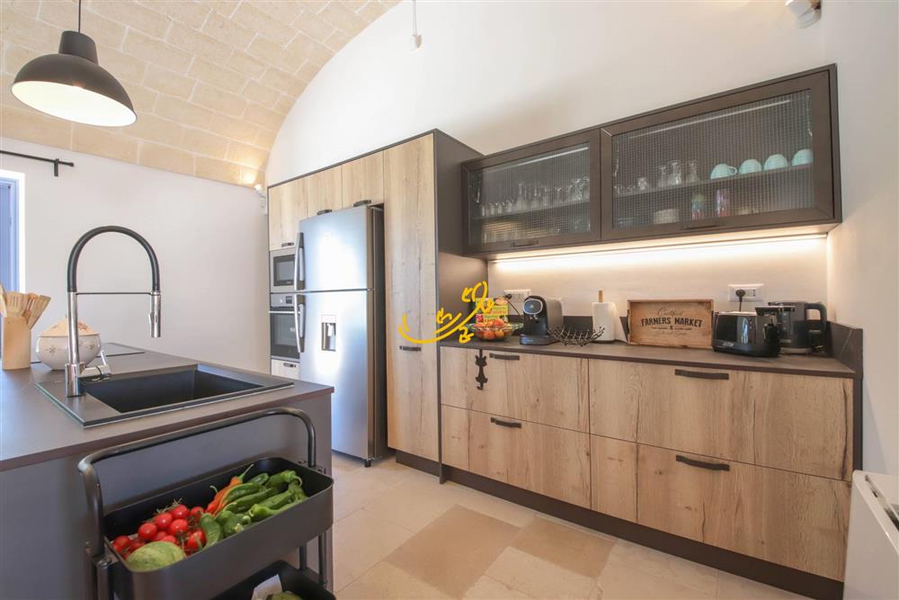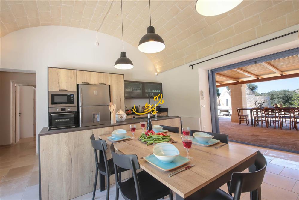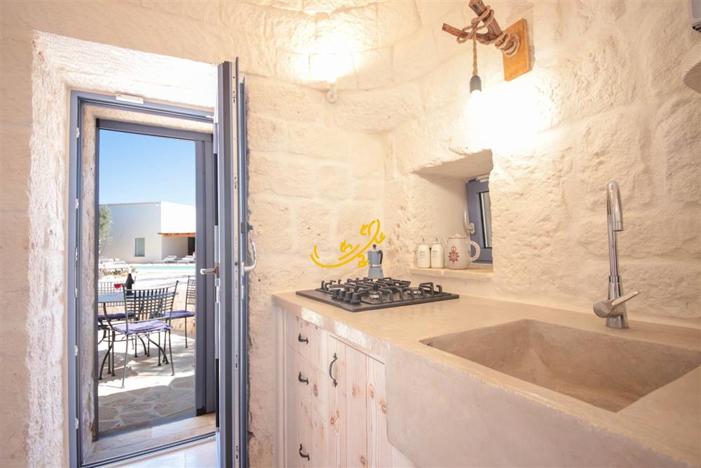 The estate is equipped with a 10-kW photovoltaic system, underfloor heating both in the villa and the trullo, and hot/cold fan coils in all rooms.