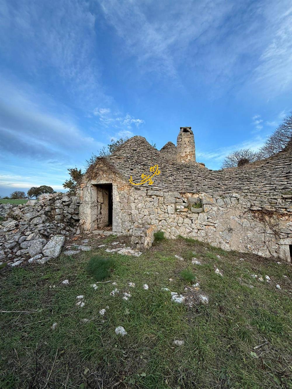 The property comprises six traditional cones, built in classic dry stone, and an internal courtyard overlooked by the various buildings. The building requires complete renovation, but retains the authentic, rustic charm of an ancient structure, ready to be transformed according to taste and creativity.