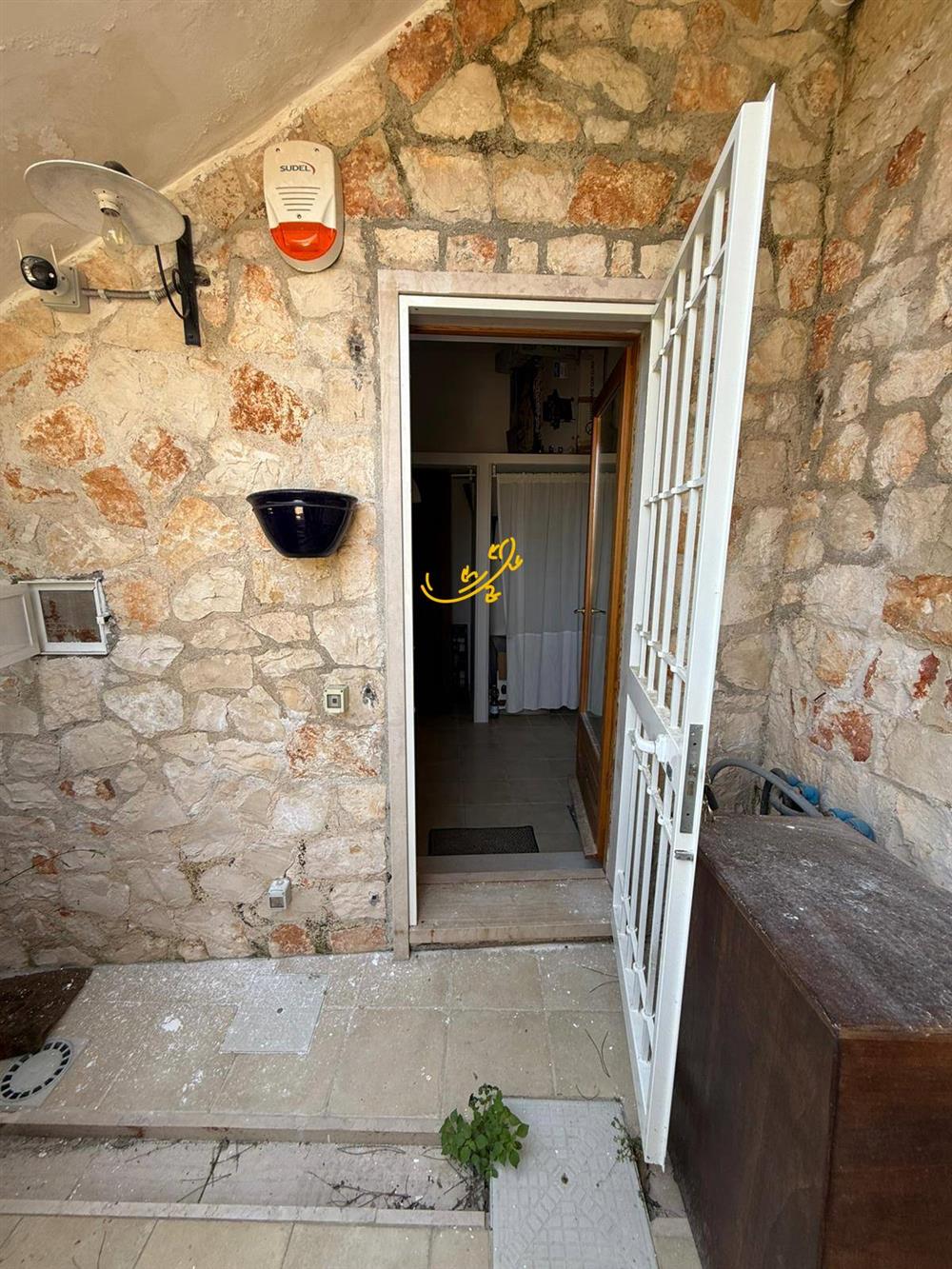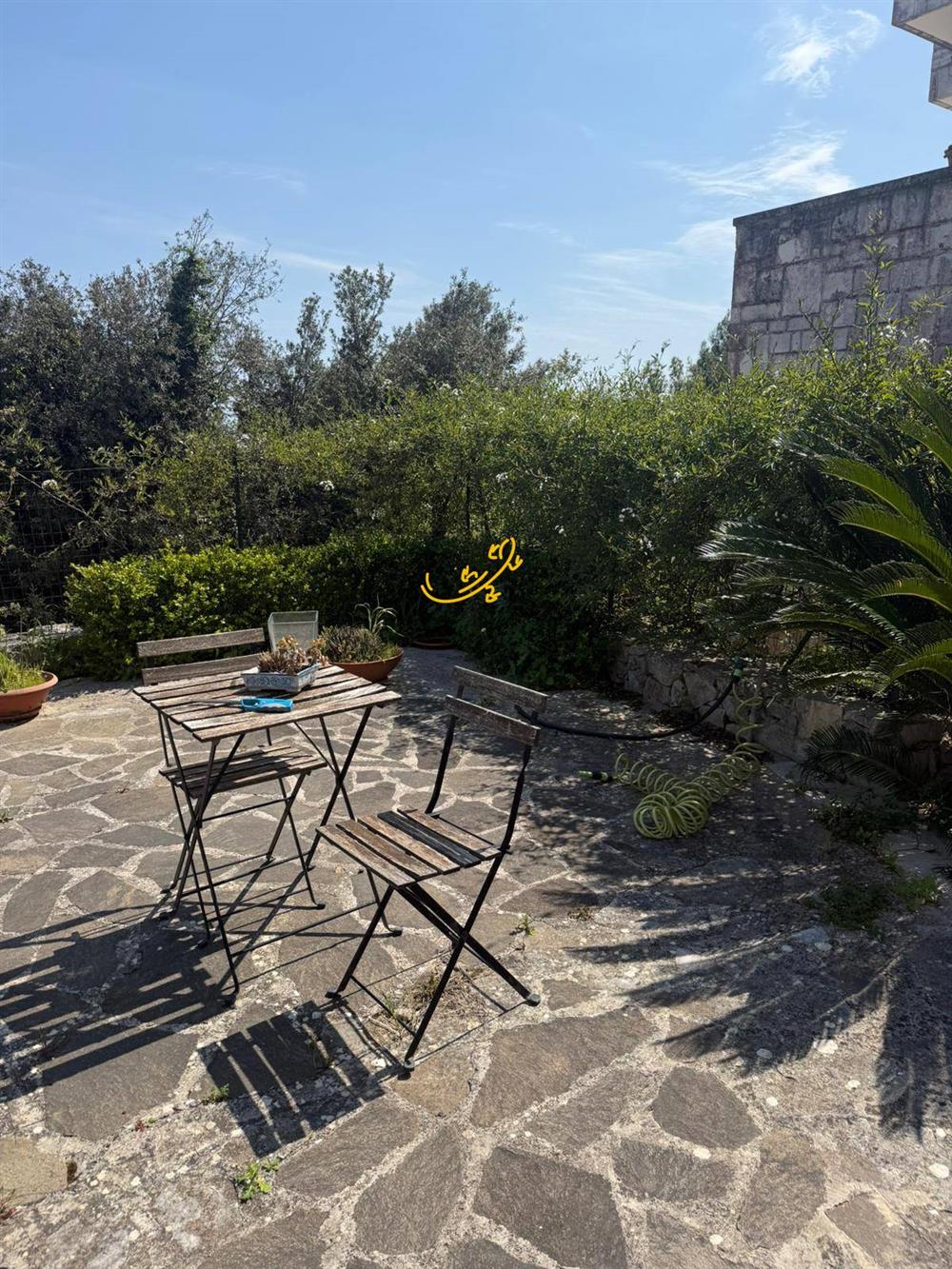Al piano inferiore troviamo un’unità indipendente, attualmente accatastata come deposito dove è stata ricavata una tavernetta con due bagni ed un camino. La proprietà dispone inoltre di giardino pavimentato dove è possibile parcheggiare automobili. Una soluzione interessante per chi è alla ricerca di una casa con vista mare e spazi generosi.